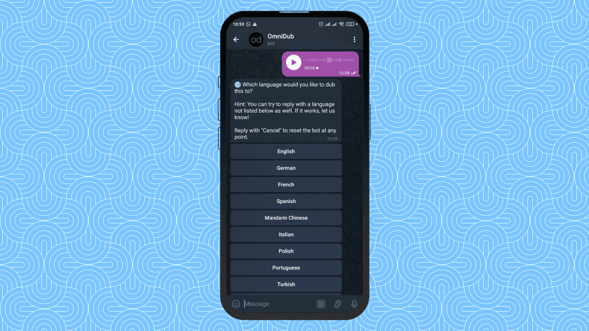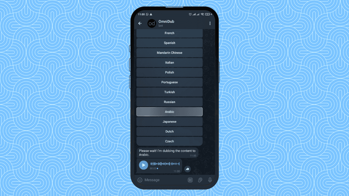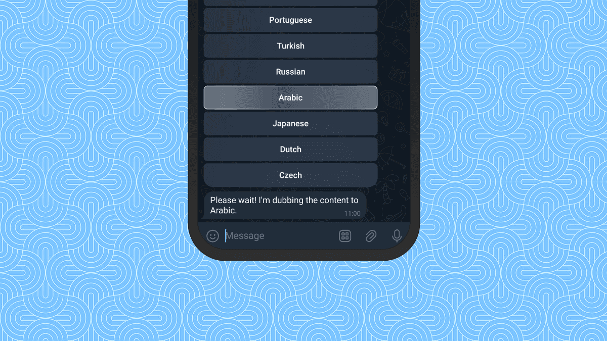After uploading the audio file, the Telegram Bot will give you a list of languages. Tap on the language you want to dub your audio to.